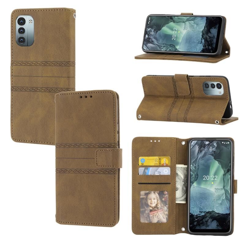 Για Nokia G21 / G11 ανάγλυφο ριγέ μαγνητική πόρπη οριζόντια Flip τηλέφωνο δερμάτινη θήκη (καφέ)