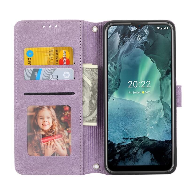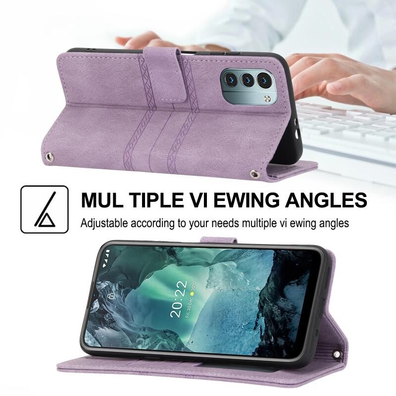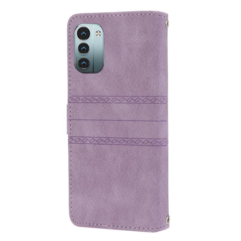 Για Nokia G21 / G11 ανάγλυφο ριγέ μαγνητική πόρπη οριζόντια Flip τηλέφωνο δερμάτινη θήκη (μωβ)