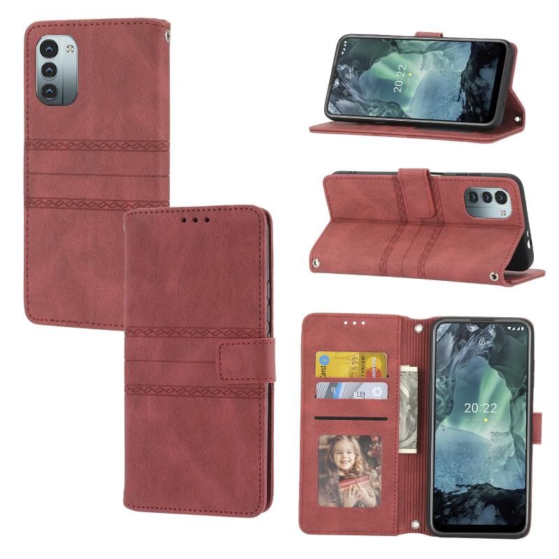 Για Nokia G21 / G11 ανάγλυφο ριγέ μαγνητική πόρπη οριζόντια Flip τηλέφωνο δερμάτινη θήκη (κόκκινο)