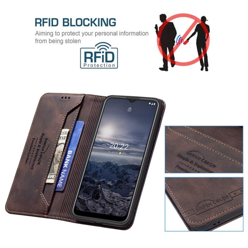 For Nokia G21 / G11 Magnetic RFID Blocking Anti-Theft Leather Phone Case(Brown)