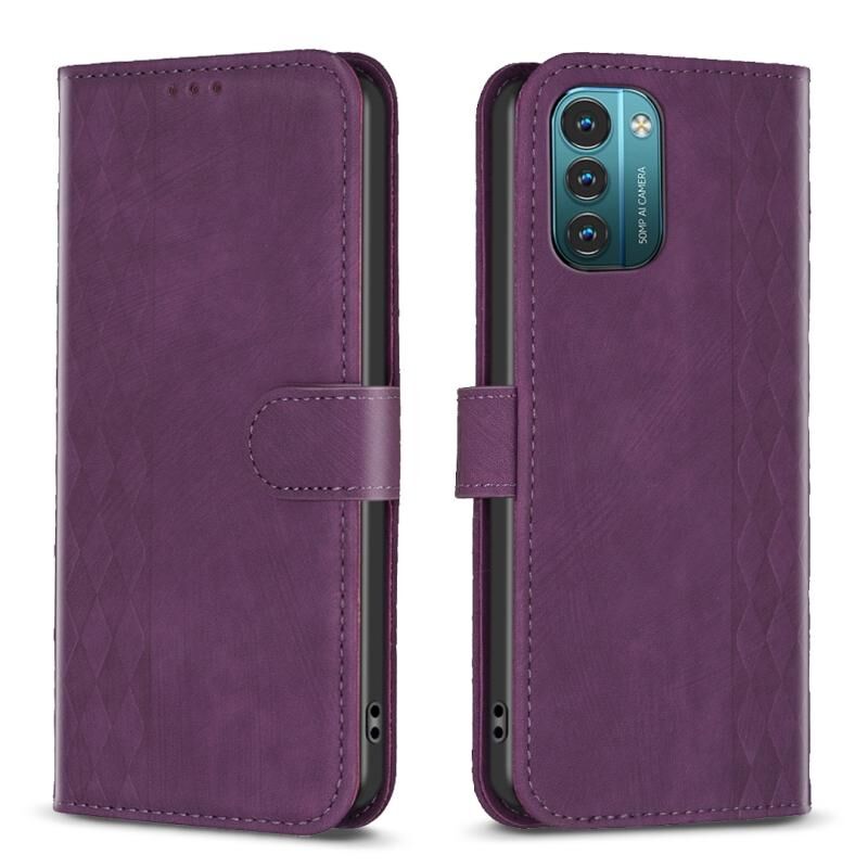 Για Nokia G21 / G11 καρό ανάγλυφη δερμάτινη θήκη τηλεφώνου (μοβ)