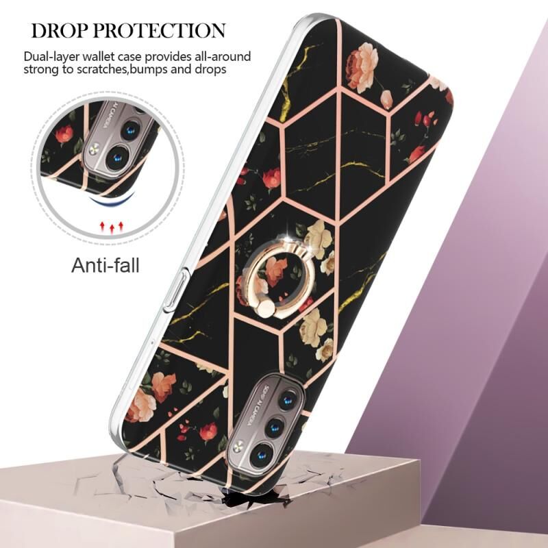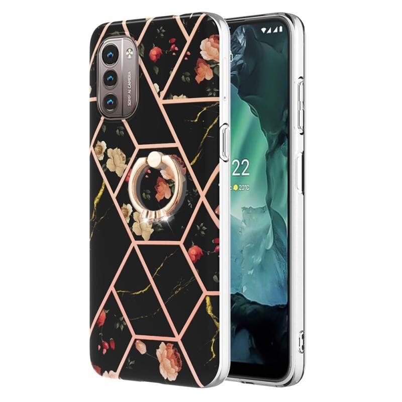 Θήκη για Nokia G21 / G11 με σχέδιο μαρμάρινου λουλουδιού, από TPU με δακτύλιο στήριξης (Ροζ Λουλούδι)