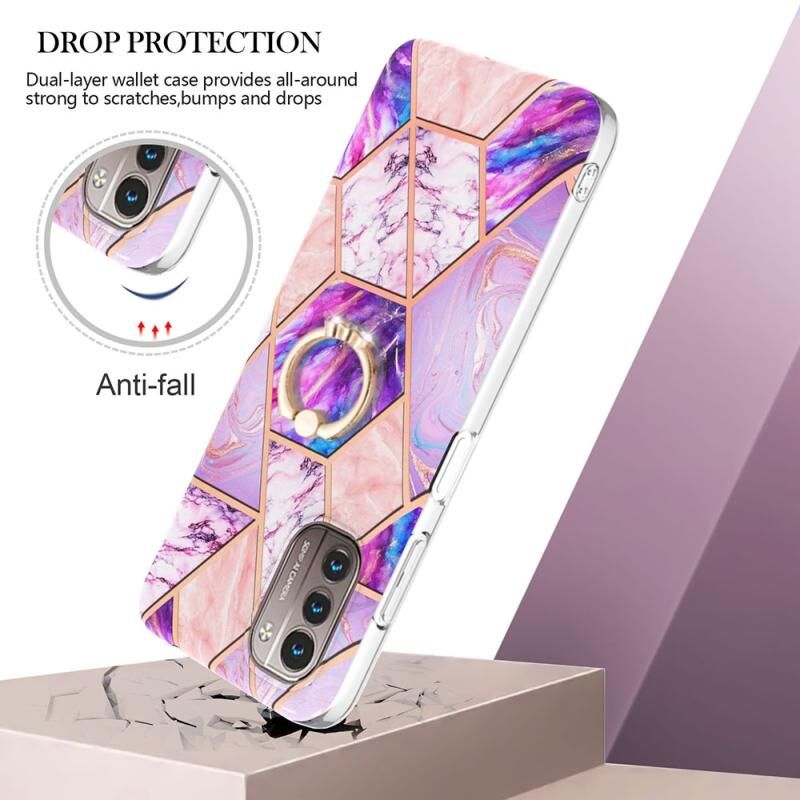 Θήκη για Nokia G21 / G11 με σχέδιο μάρμαρου, διπλής όψης IMD TPU με δακτύλιο στήριξης (Ροζ Λευκό)