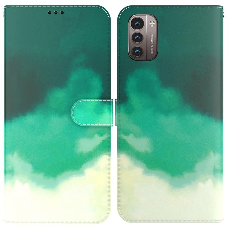 Για το Nokia G21 / G11 Υδατογραφία μοτίβο οριζόντια Flip δέρμα τηλέφωνο υπόθεση (Cyan πράσινο)