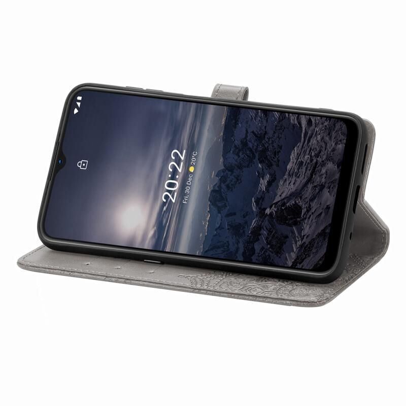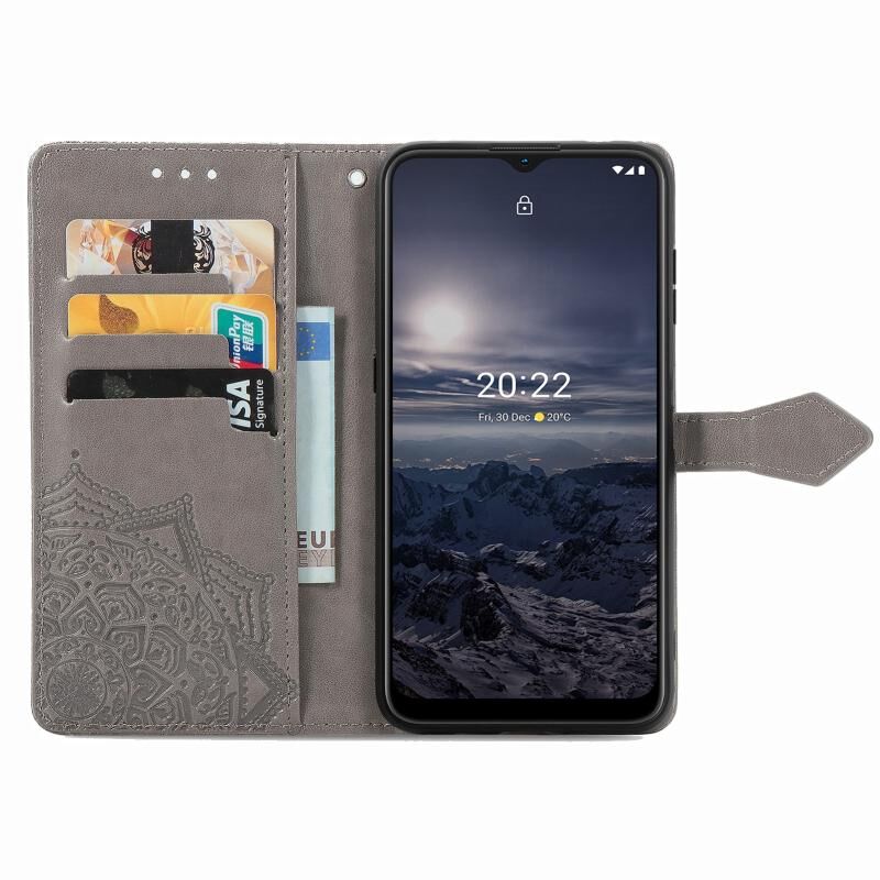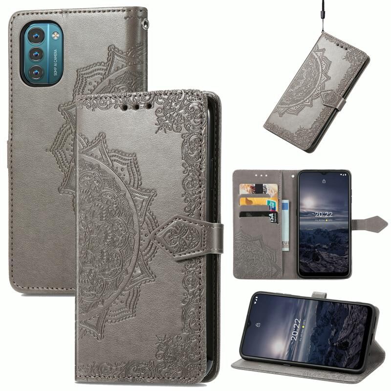 Για το Nokia G21 Mandala λουλούδι ανάγλυφο Flip δερμάτινη θήκη τηλεφώνου (γκρι)