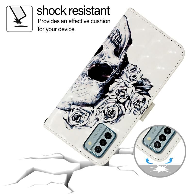 Θήκη τηλεφώνου από δέρμα με οριζόντια αναδίπλωση και τρισδιάστατη ζωγραφική για Nokia G22 (Κρανίο)