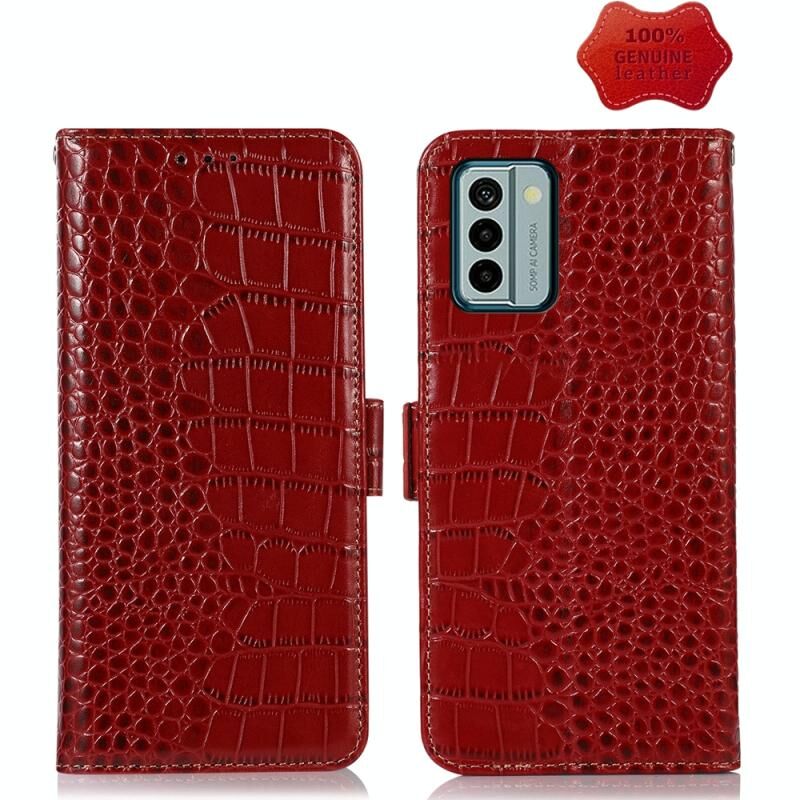 Θήκη τηλεφώνου από γνήσιο δέρμα αγελάδας με επικάλυψη κροκόδειλου για Nokia G22 4G (Μαύρο)