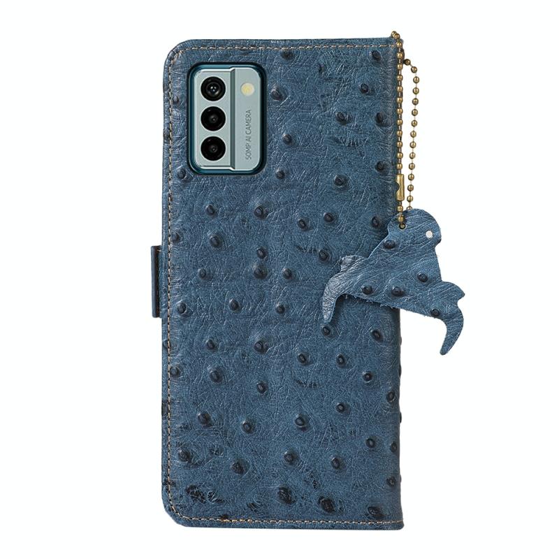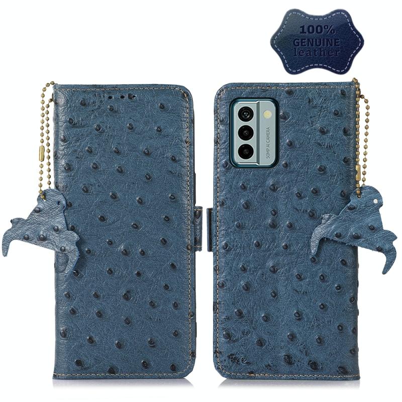 Θήκη τηλεφώνου από γνήσιο δέρμα με σχέδιο στρουθοκάμηλου για Nokia G22 4G, με προστασία RFID (Πράσινο)
