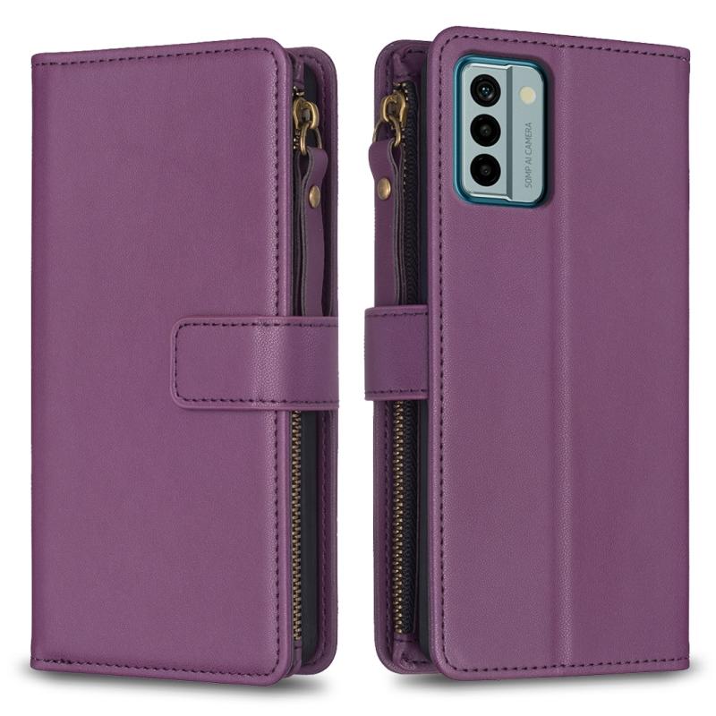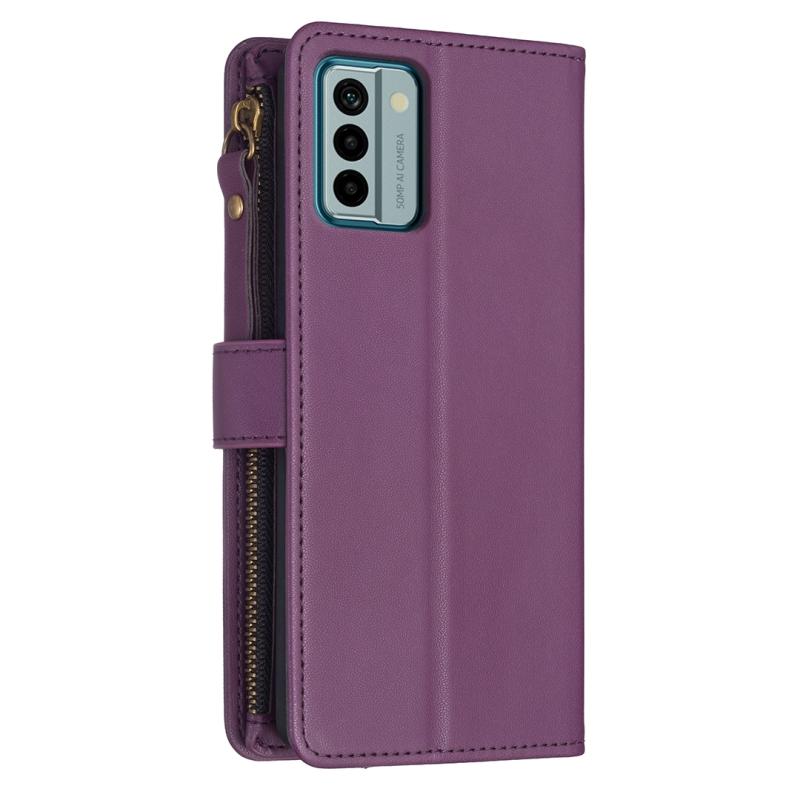 Θήκη τηλεφώνου τύπου flip από δέρμα με φερμουάρ και 9 θήκες καρτών για Nokia G22 (Ανοιχτό Μωβ)