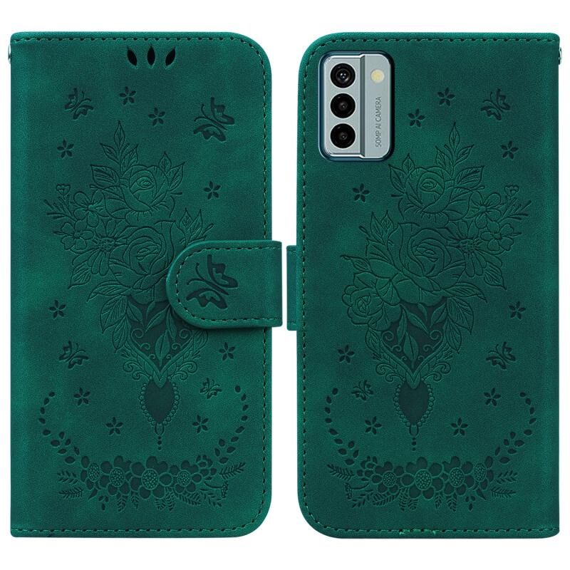 Για Nokia G22 Πεταλούδα Rose ανάγλυφο δέρμα υπόθεση τηλεφώνου (πράσινο)
