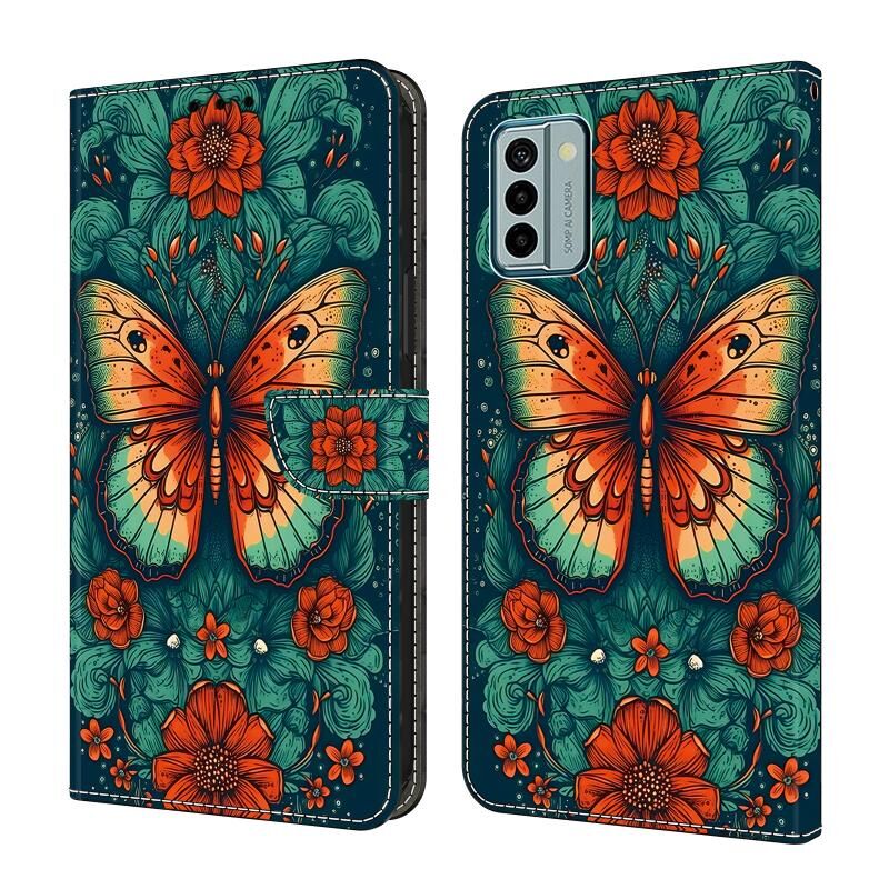 Θήκη τηλεφώνου Nokia G22 από δέρμα με κρυστάλλινη ζωγραφική (Λουλούδι Πεταλούδα)