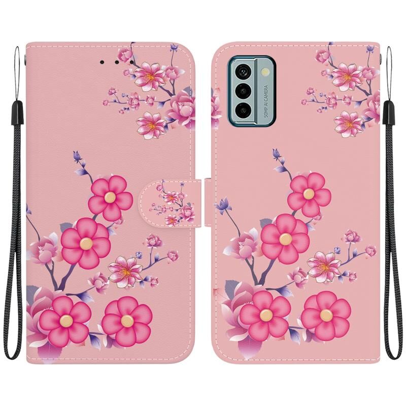 Θήκη τηλεφώνου Nokia G22 με κρυστάλλινη υφή, πολύχρωμο σχέδιο δέρματος (Λουλούδια κερασιάς)