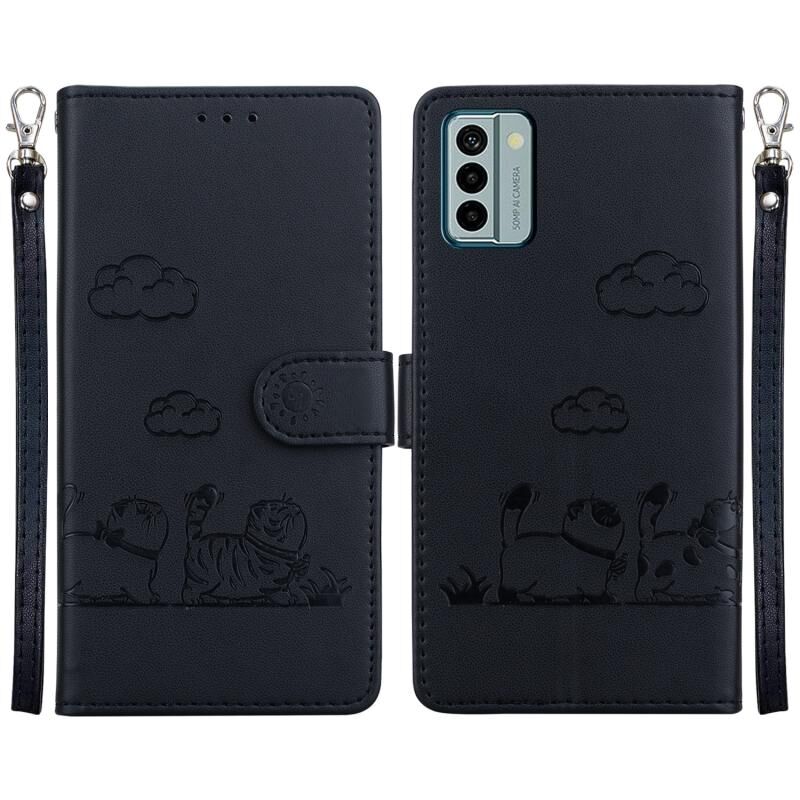 Θήκη τηλεφώνου από δέρμα με τεχνολογία RFID για Nokia G22, χαριτωμένες γάτες (Χρυσό ροζ)