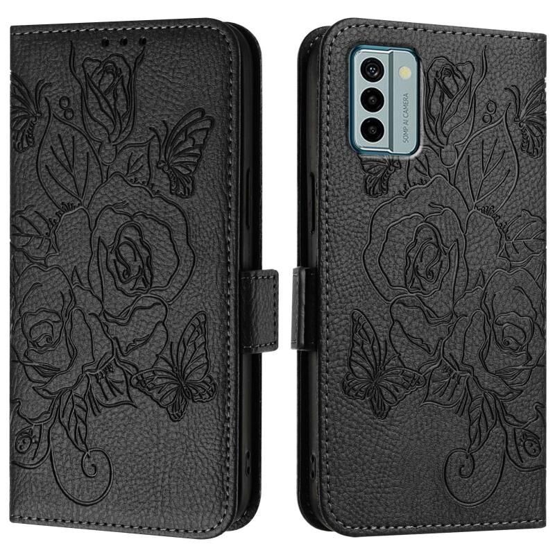 For Nokia G22 Embossed Rose RFID Anti-theft Leather Phone Case(Black)