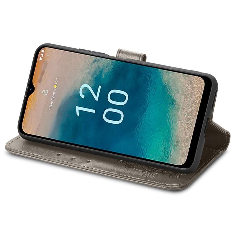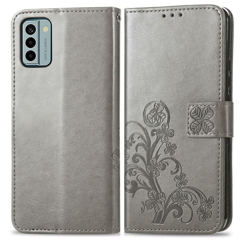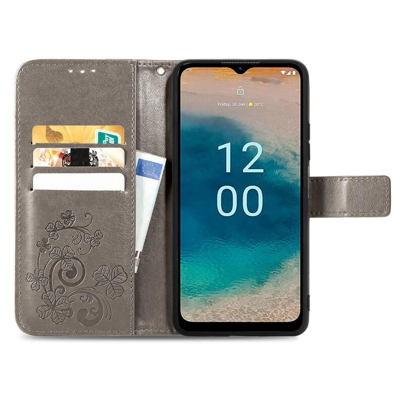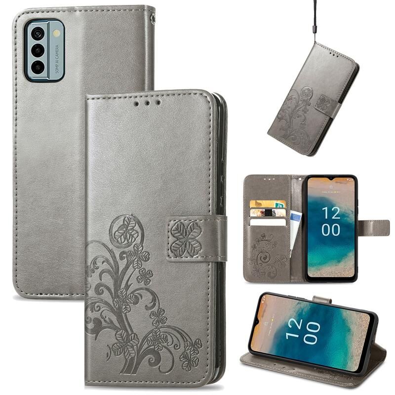For Nokia G22 Four-leaf Clasp Embossed Buckle Leather Phone Case(Gray)