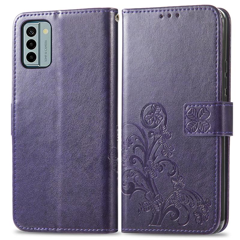 For Nokia G22 Four-leaf Clasp Embossed Buckle Leather Phone Case(Purple)