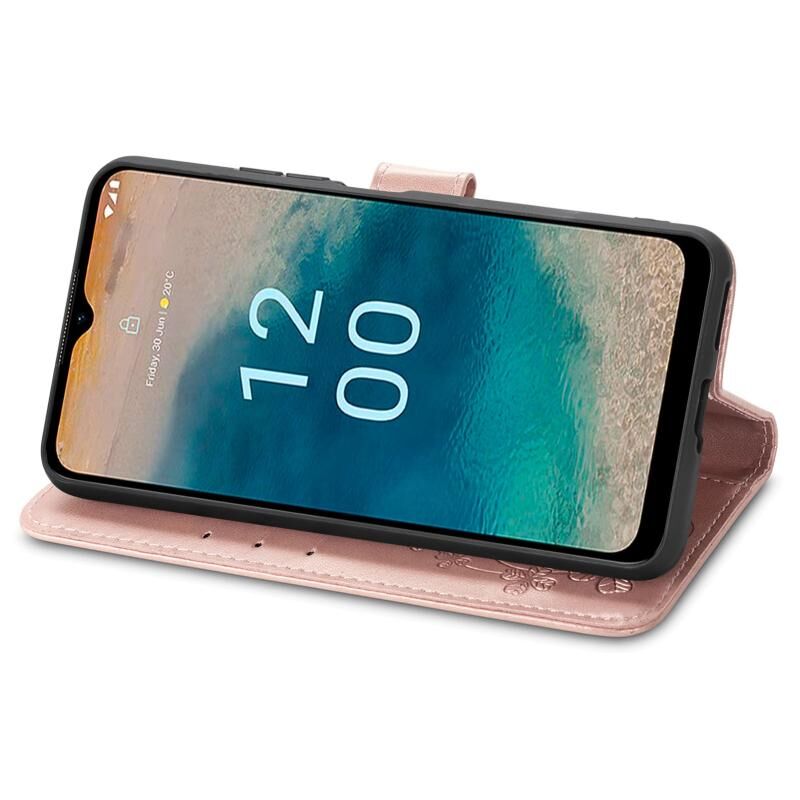 For Nokia G22 Four-leaf Clasp Embossed Buckle Leather Phone Case(Rose Gold)