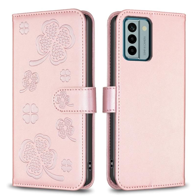 Για το Nokia G22 τετράφυλλο ανάγλυφη δερμάτινη θήκη τηλεφώνου (ροζ)
