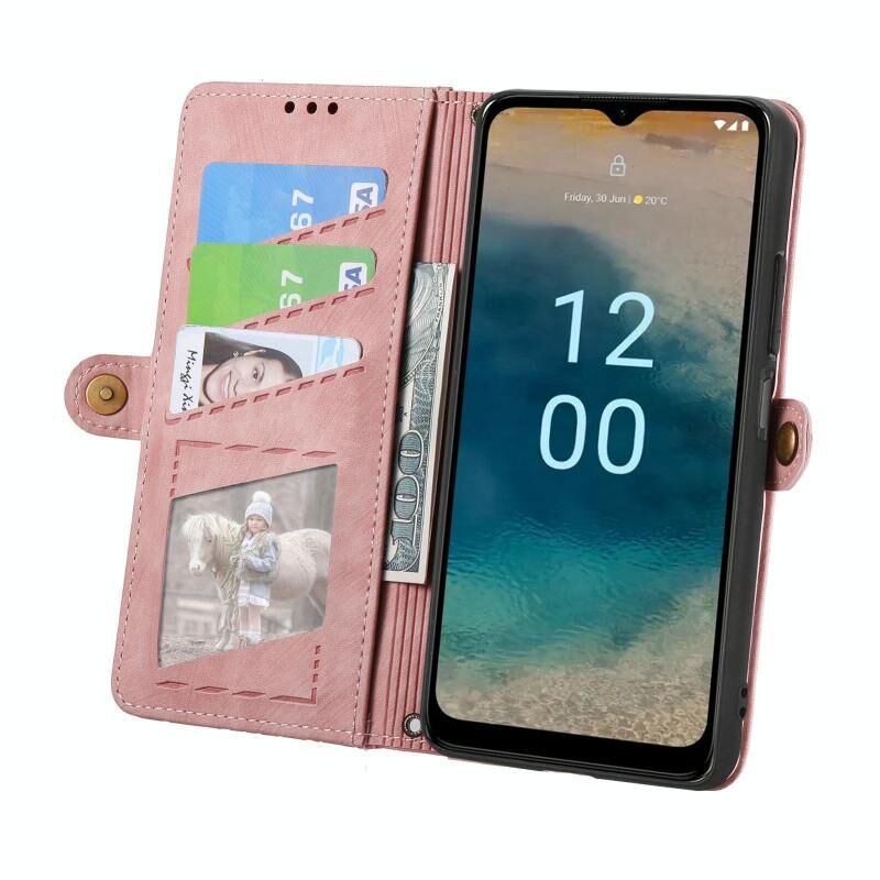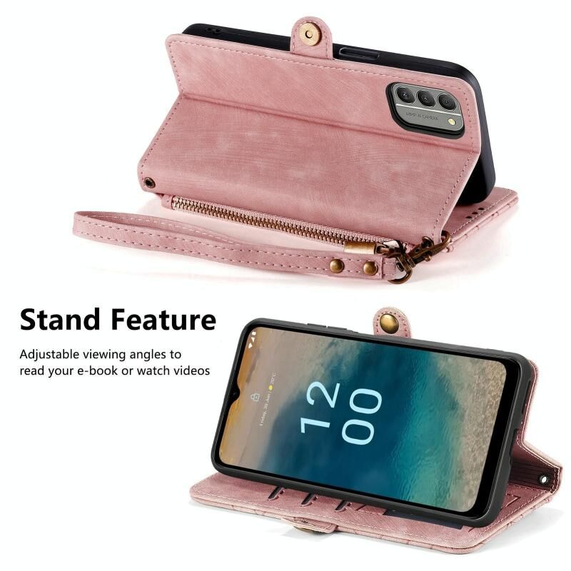 Για Nokia G22 Γεωμετρική φερμουάρ πορτοφόλι πλευρά πόρπη δερμάτινη θήκη τηλεφώνου (ροζ)