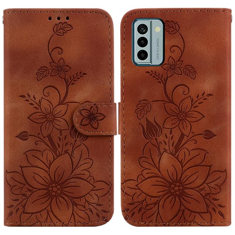 Για Nokia G22 Lily ανάγλυφη δερμάτινη θήκη τηλεφώνου (καφέ)