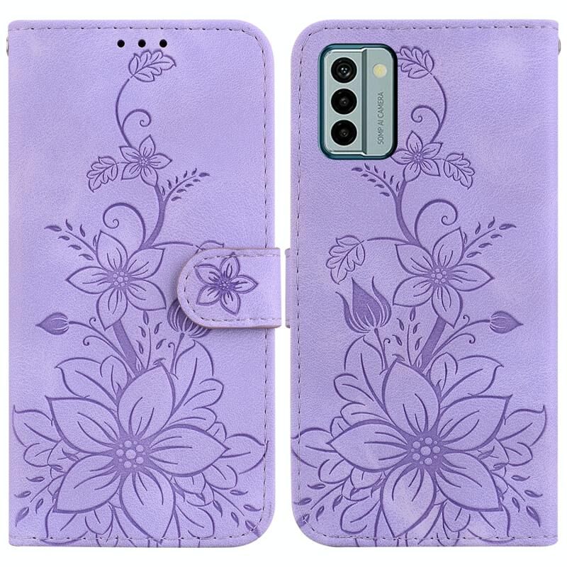 Για Nokia G22 Lily ανάγλυφη δερμάτινη θήκη τηλεφώνου (μωβ)
