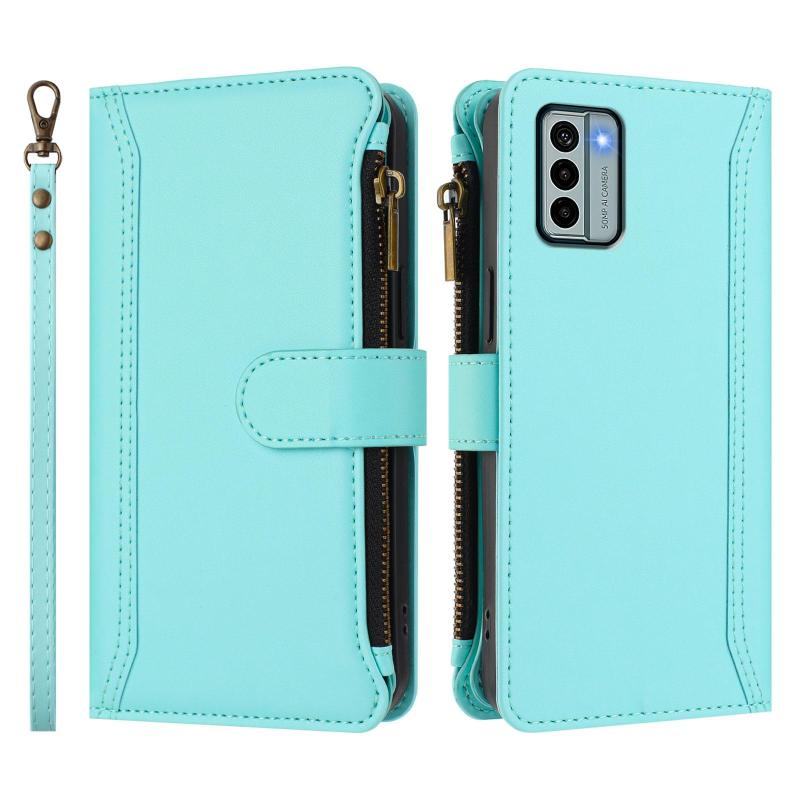 For Nokia G22 Magnetic Closure 9 Card Slots Zipper Leather Case with Hand Strap(Mint Green)
