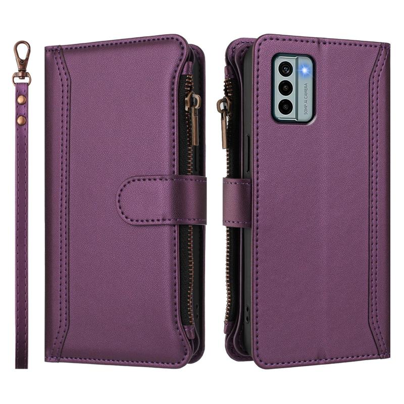 For Nokia G22 Magnetic Closure 9 Card Slots Zipper Leather Case with Hand Strap(Purple)
