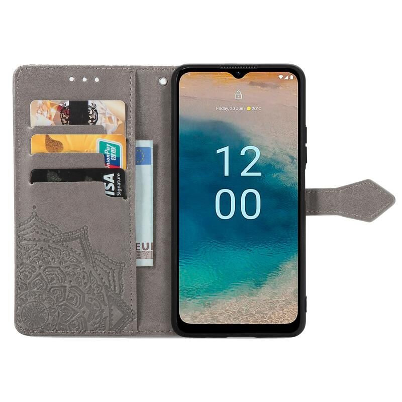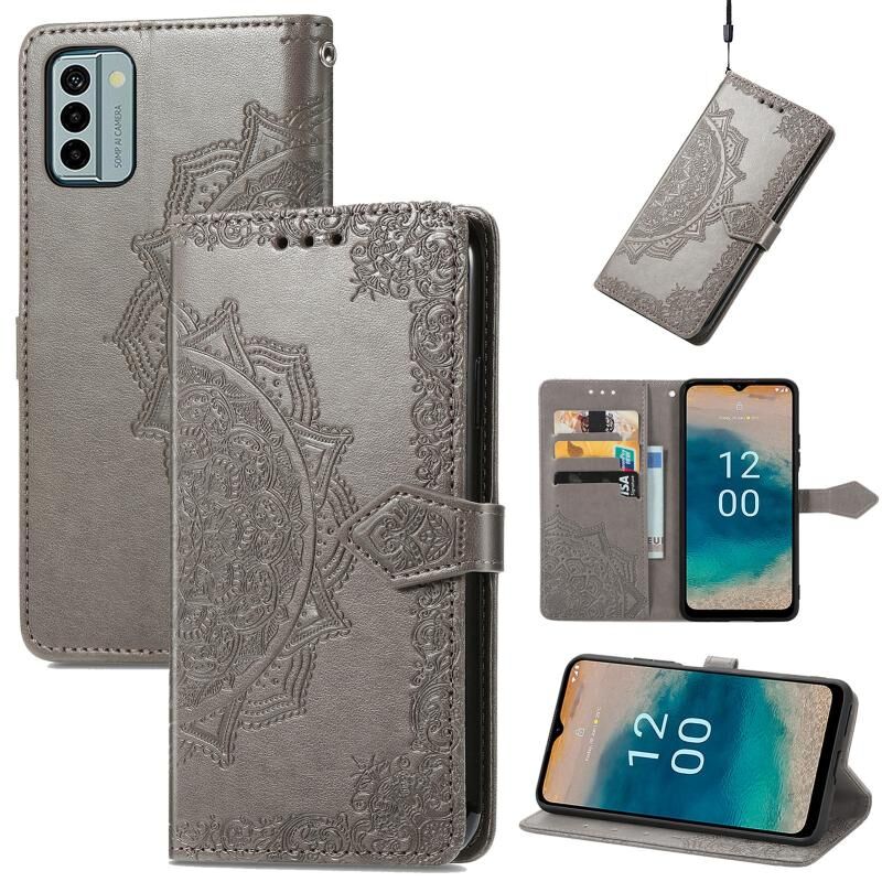 Για Nokia G22 Mandala λουλούδι ανάγλυφο δέρμα υπόθεση τηλεφώνου (γκρι)