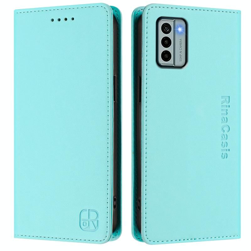 Θήκη τηλεφώνου δερμάτινη με μαγνητική απορρόφηση και διπλή πτυχή για Nokia G22 RC01 (Μέντας Πράσινο)
