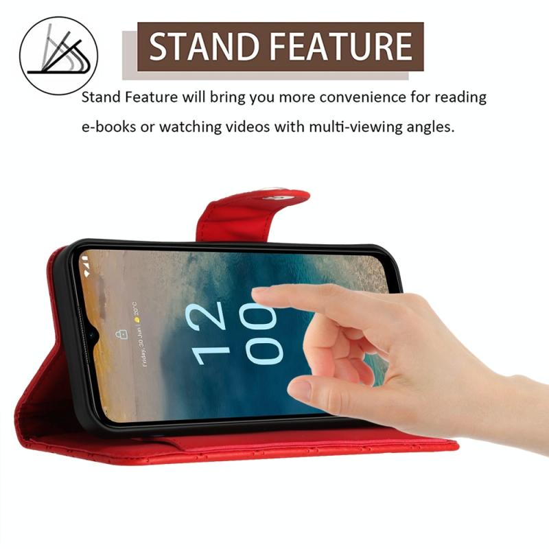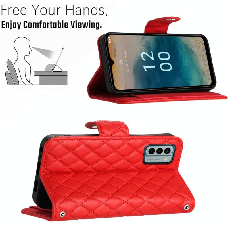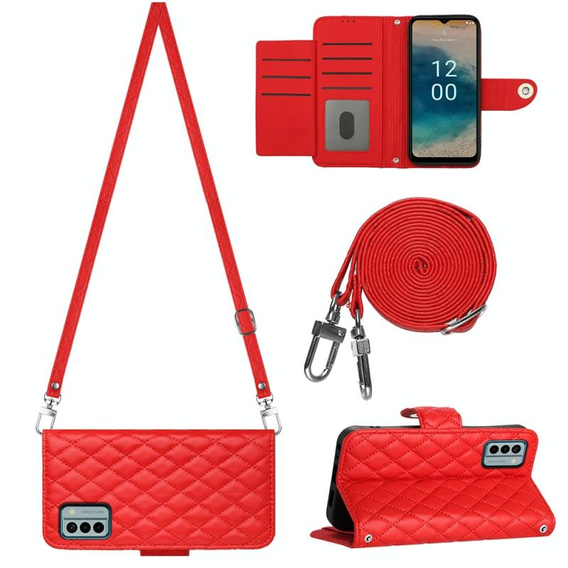 For Nokia G22 Rhombic Texture Flip Leather Phone Case with Long Lanyard(Red)