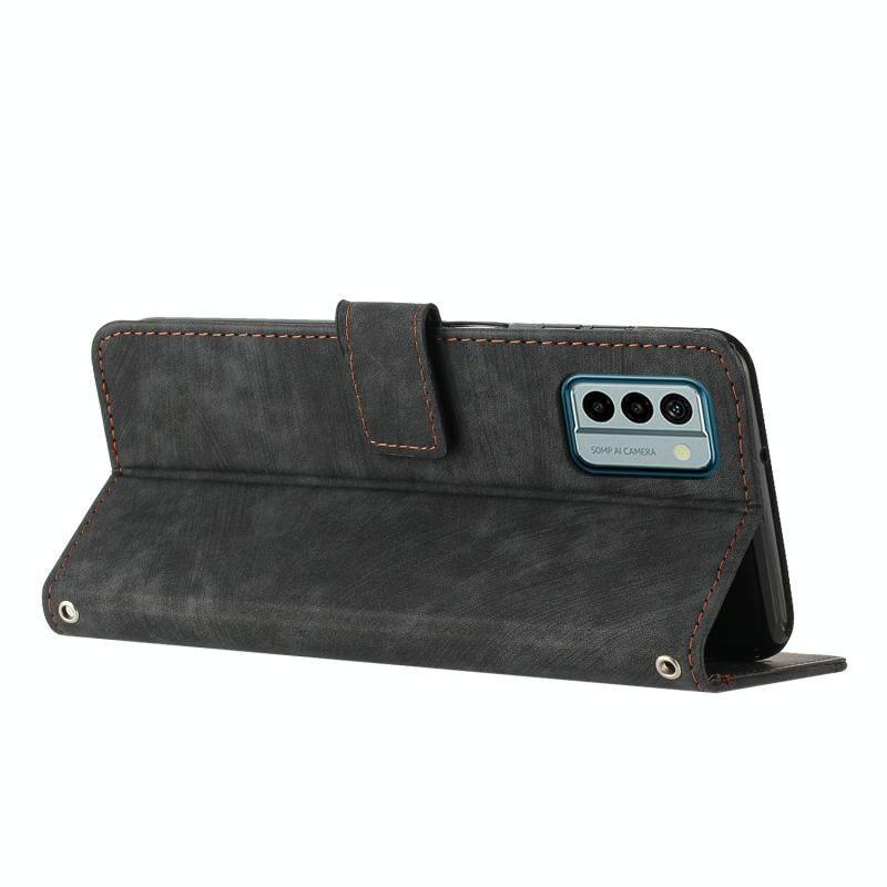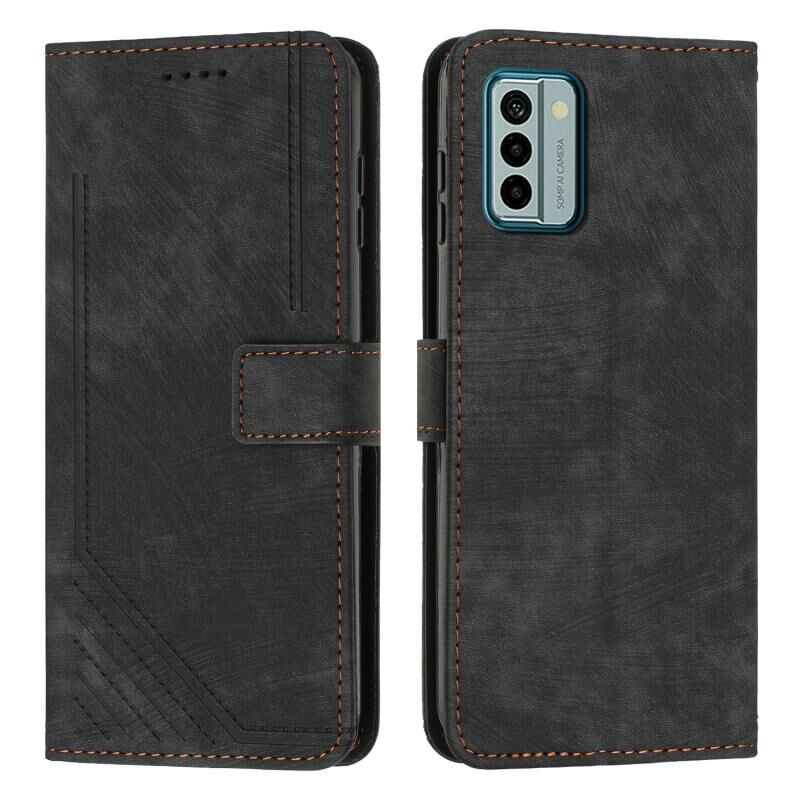 Για το Nokia G22 δέρμα αισθάνονται λωρίδα μοτίβο δερμάτινη θήκη τηλεφώνου με κορδόνι (μαύρο)