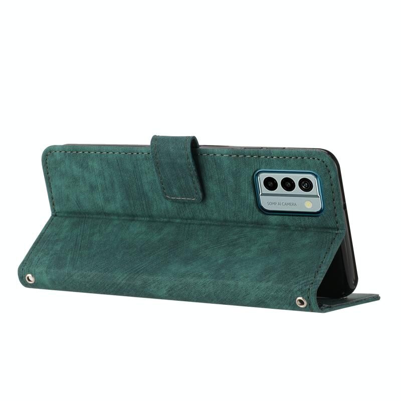Για το Nokia G22 δέρμα Feel Stripe μοτίβο δερμάτινη θήκη τηλεφώνου με κορδόνι (πράσινο)