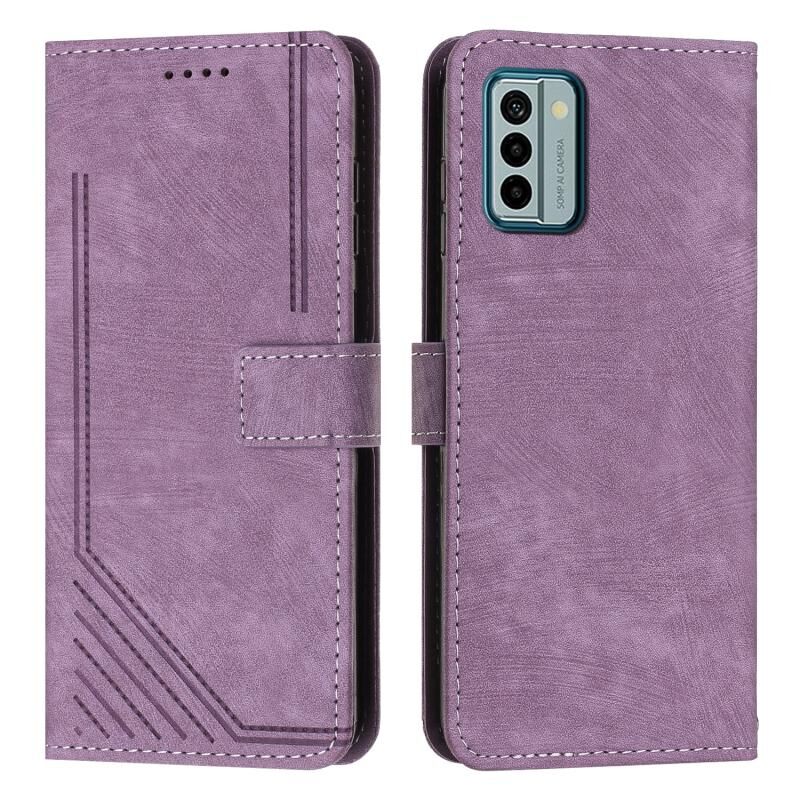 Για το Nokia G22 δέρμα Feel Stripe μοτίβο δερμάτινη θήκη τηλεφώνου με κορδόνι (μωβ)