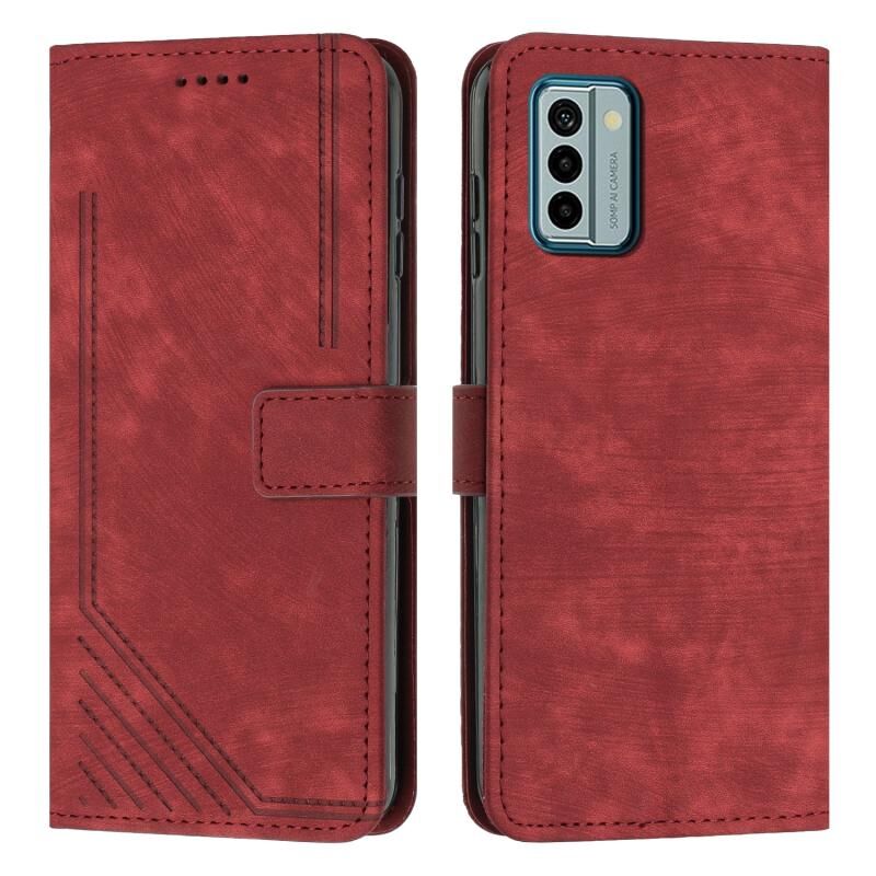 Για το Nokia G22 δέρμα Feel Stripe μοτίβο δερμάτινη θήκη τηλεφώνου με κορδόνι (κόκκινο)