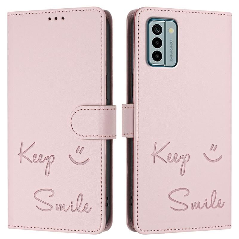 Για Nokia G22 Χαμόγελο ανάγλυφο RFID δερμάτινη θήκη τηλεφώνου (ροζ)