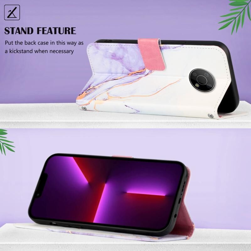 Θήκη τηλεφώνου από δέρμα με σχέδιο μάρμαρου για Nokia G300 PT003 (Ροζ Μωβ Χρυσό LS001)