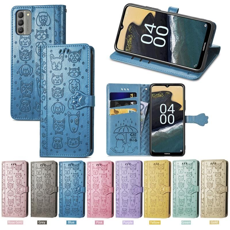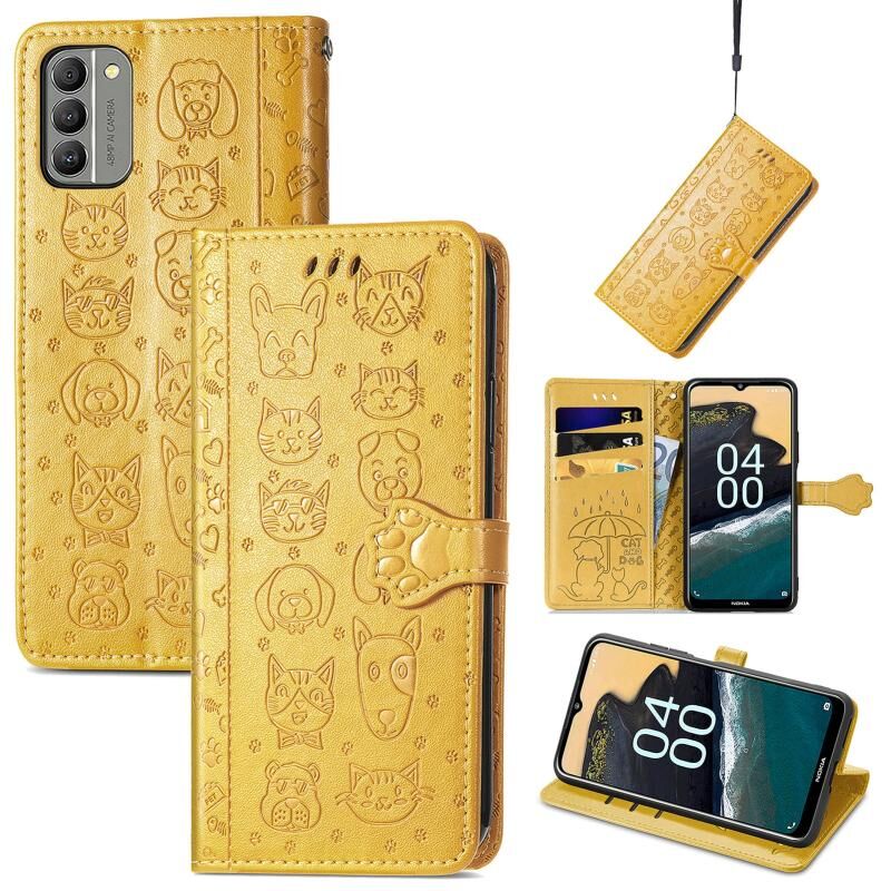 Θήκη τηλεφώνου από δέρμα με ανάγλυφο σχέδιο γάτας και σκύλου για Nokia G400 (Κίτρινο)