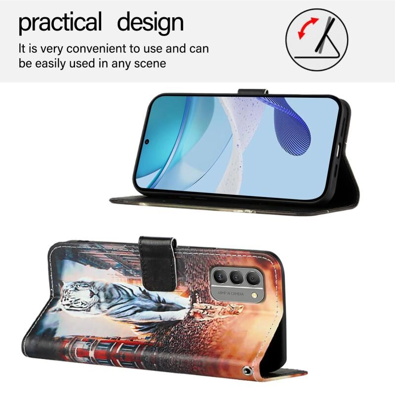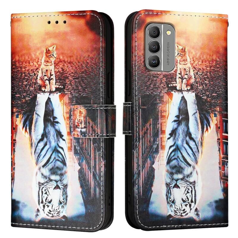 Θήκη τηλεφώνου από δέρμα με απλή ύφανση για Nokia G400 με έγχρωμο σχέδιο (Γάτες και Τίγρεις)
