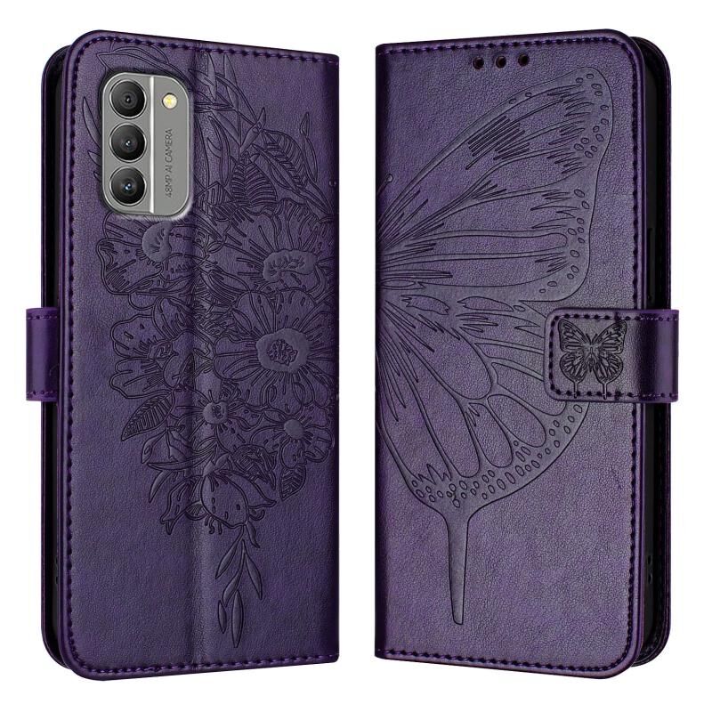 Για Nokia G400 ανάγλυφη πεταλούδα δερμάτινη θήκη τηλεφώνου (σκούρο μοβ)