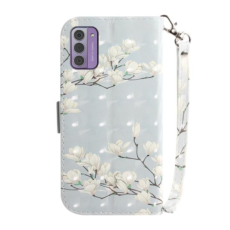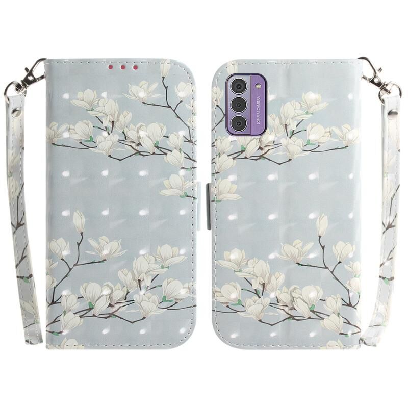 Θήκη τηλεφώνου δερμάτινη, οριζόντια, αναδιπλούμενη, με τρισδιάστατα έγχρωμα σχέδια για Nokia G42 (Μαγνολία)