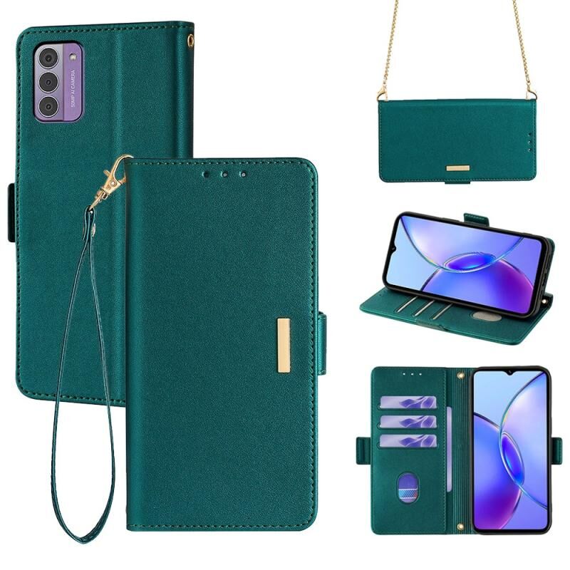 Θήκη τηλεφώνου Nokia G42 4G από δέρμα με αλυσίδα για χιαστί (Μπλε)
