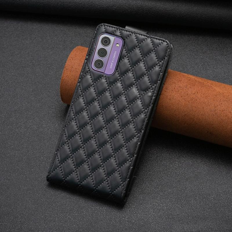 Θήκη Δερμάτινη Flip με Διαμαντένιο Πλέγμα για Nokia G42 5G (Μαύρο)