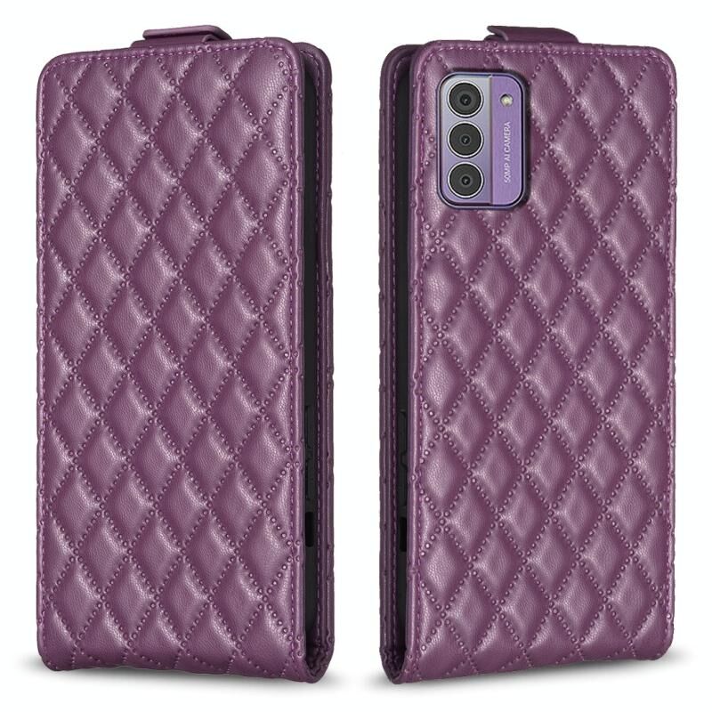 Θήκη Δερμάτινη Flip με Διαμαντένιο Πλέγμα για Nokia G42 5G (Σκούρο Μωβ)