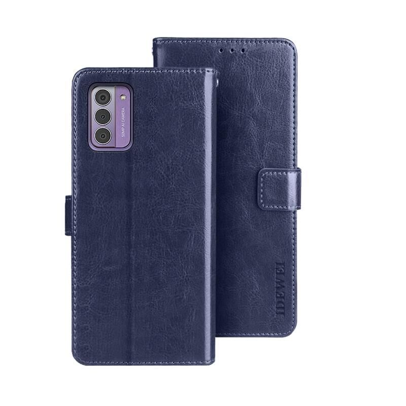 Θήκη τηλεφώνου από δέρμα Crazy Horse με υφή για Nokia G42 5G idewei με βάση στήριξης (Λευκό) (Μπλε)