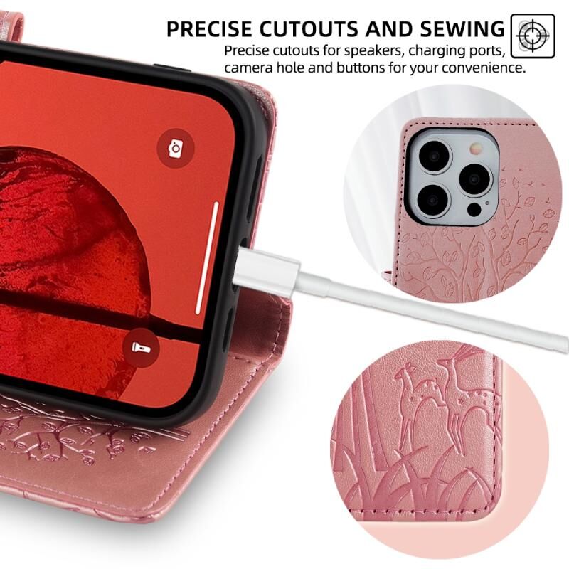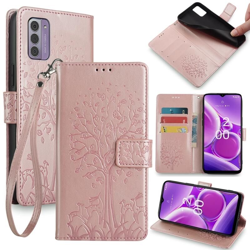 Για Nokia G42 5G δέντρο & ελάφι ανάγλυφη δερμάτινη θήκη τηλεφώνου (ροζ χρυσό)