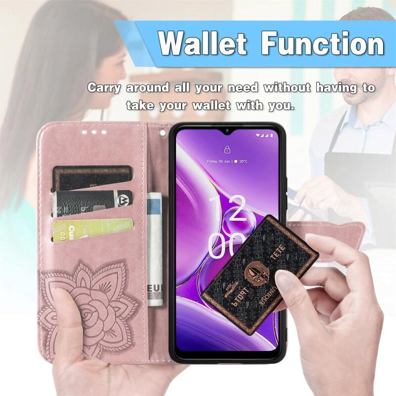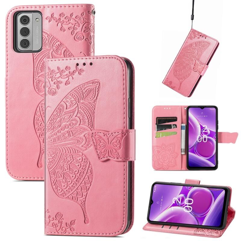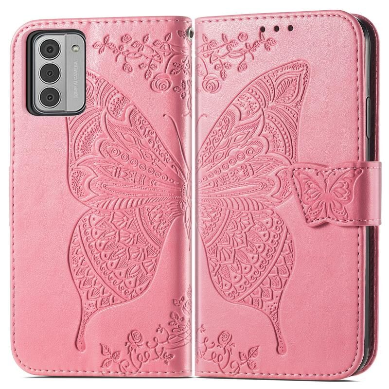 Θήκη τηλεφώνου δερμάτινη ανάγλυφη με σχέδιο πεταλούδας και λουλουδιών για Nokia G42 (Ροζ)