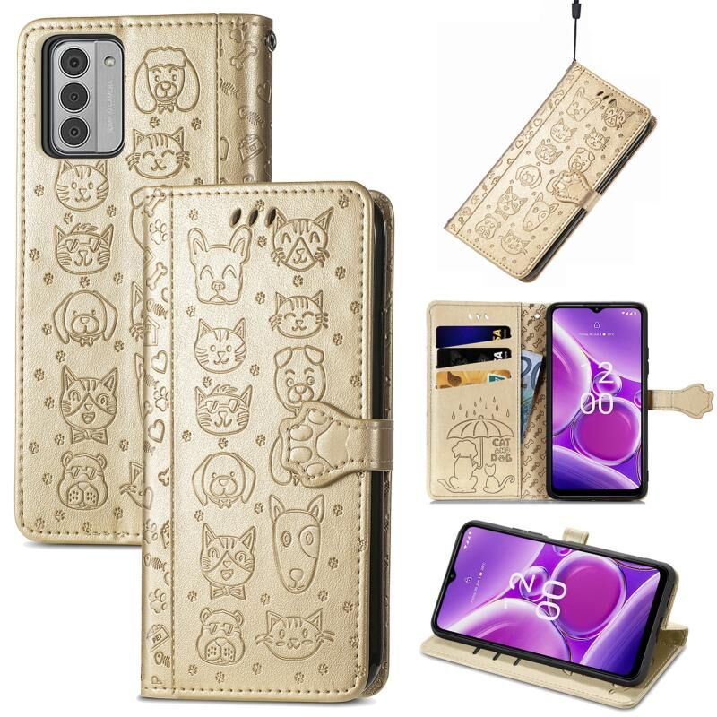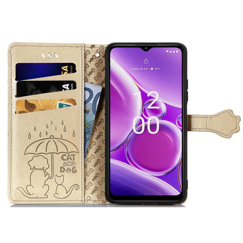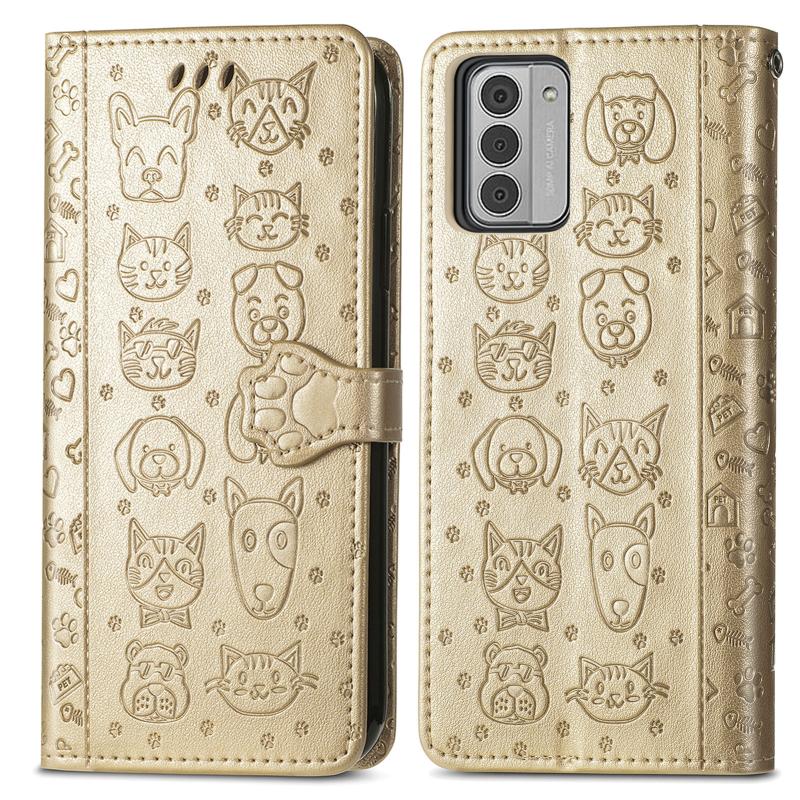 For Nokia G42 Cat and Dog Embossed Leather Phone Case(Gold)