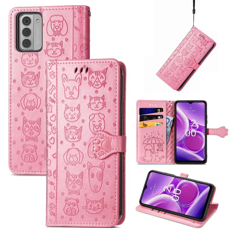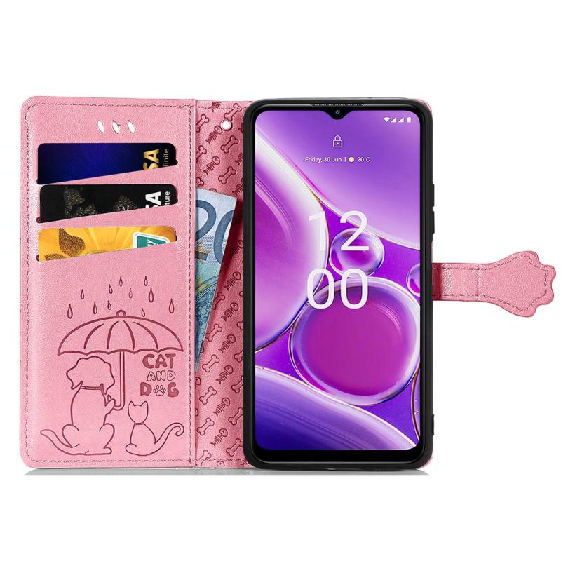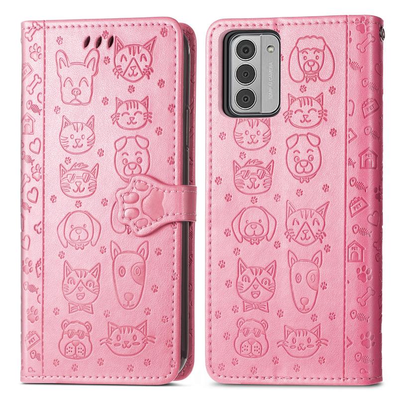 For Nokia G42 Cat and Dog Embossed Leather Phone Case(Pink)