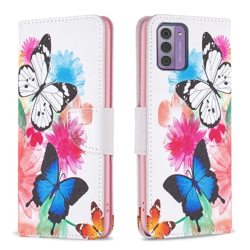 Θήκη τηλεφώνου Nokia G42 από δέρμα με έγχρωμο σχέδιο (Πεταλούδες)