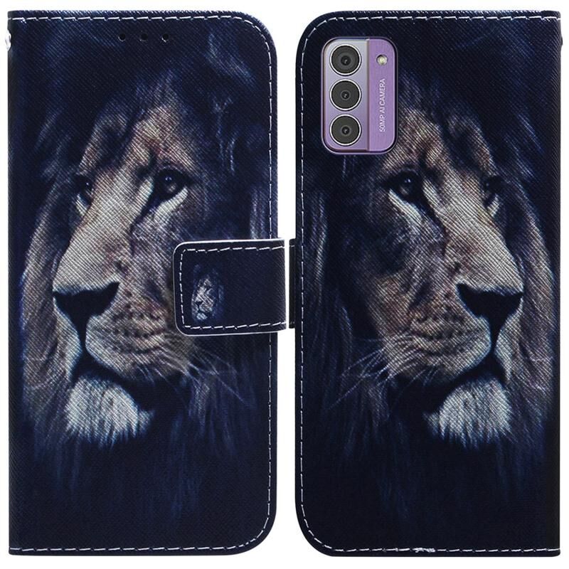 Θήκη τηλεφώνου από δέρμα με σχέδιο λιονταριού και πολύχρωμη ζωγραφική για Nokia G42 (Lion)